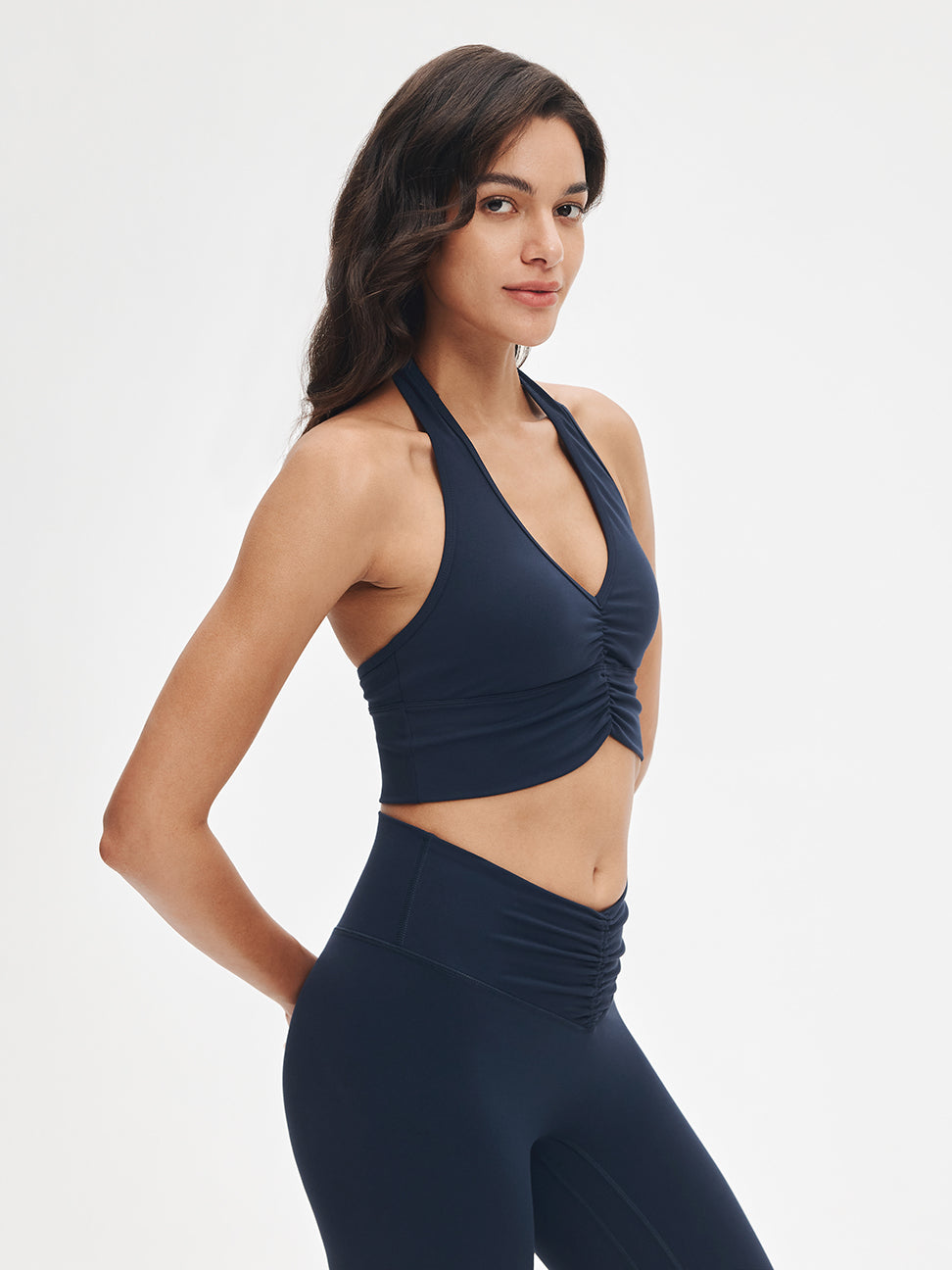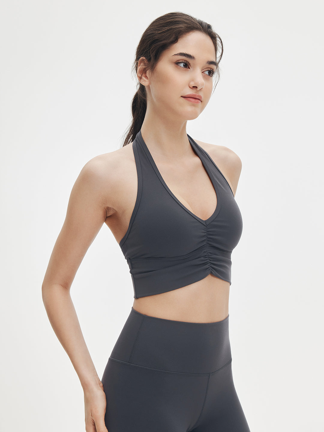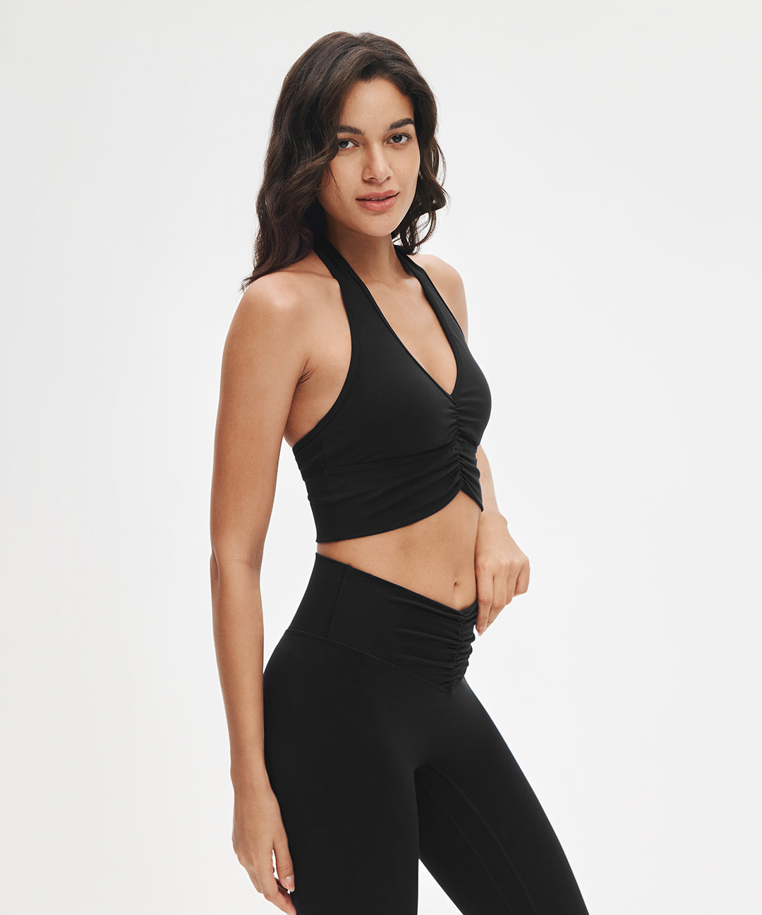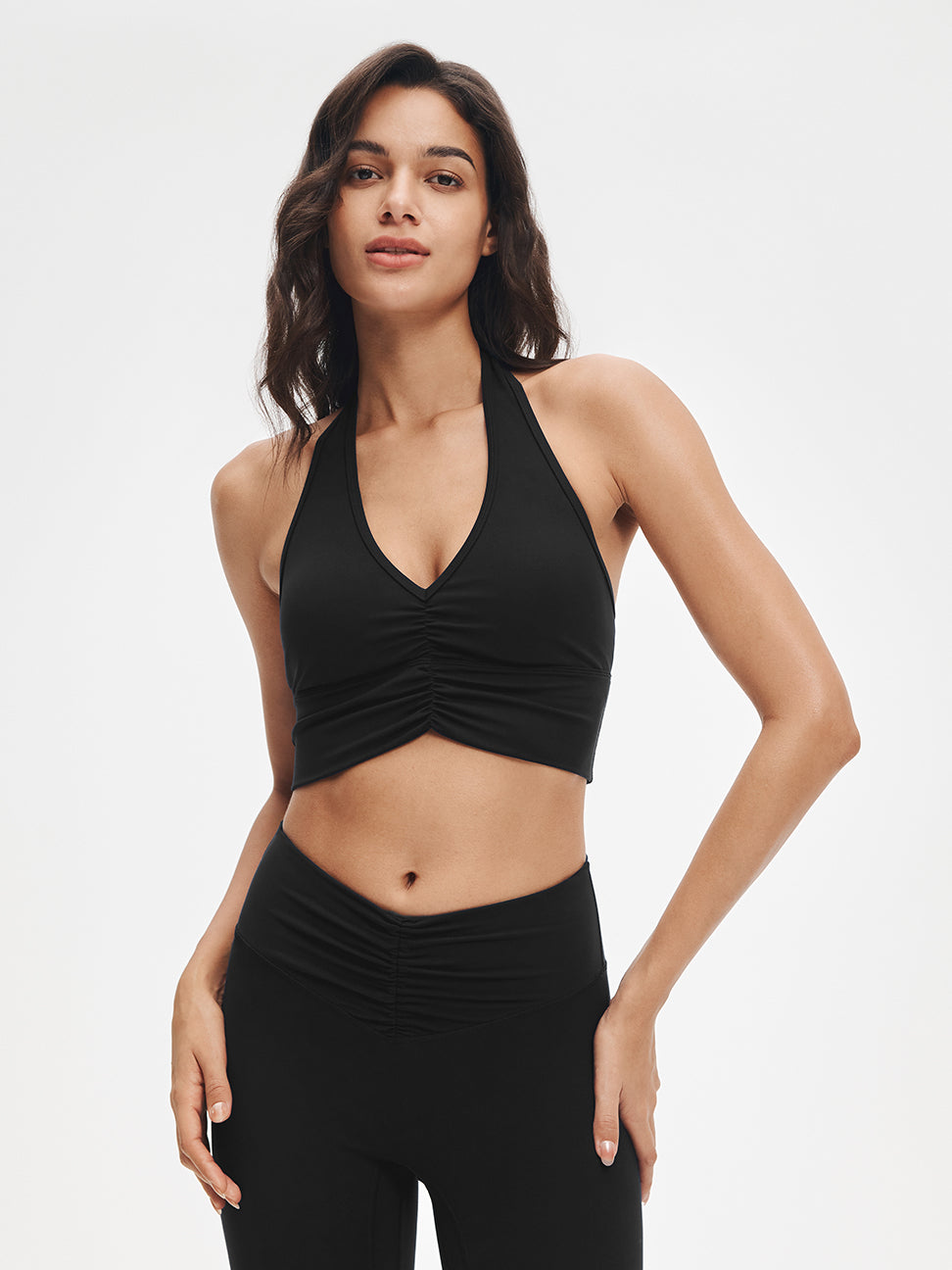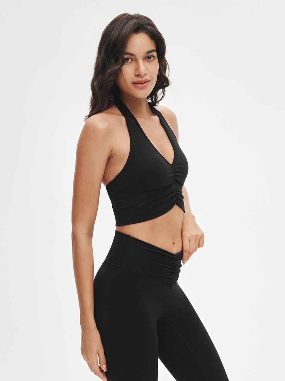 Impossible to ignore. Sweet ruching details and a flattering V-neck elongate the neckline, while the halter design transitions effortlessly from yoga to the street. Style it with relaxed pants or leggings—crafted in ultra-soft LunaAiry™ fabric for all-day comfort.