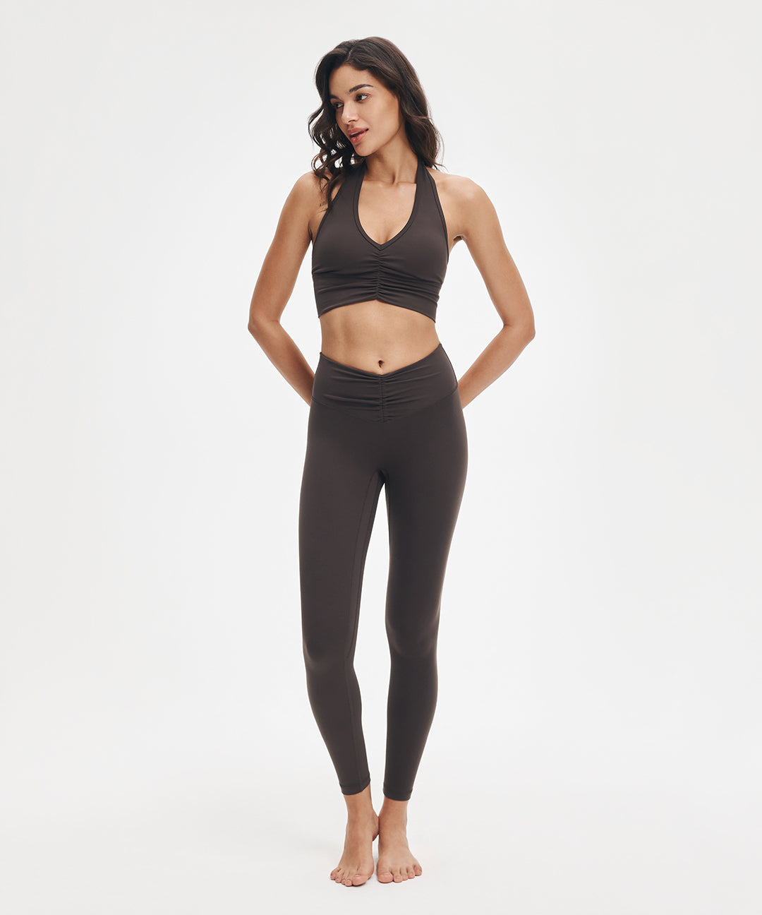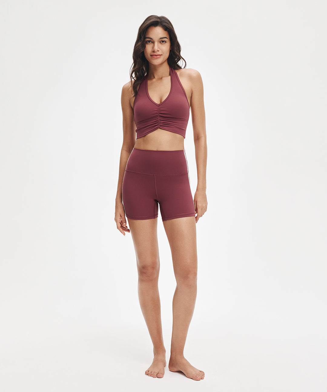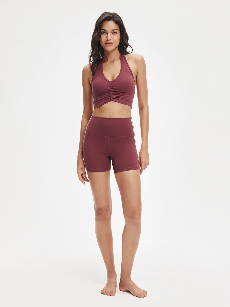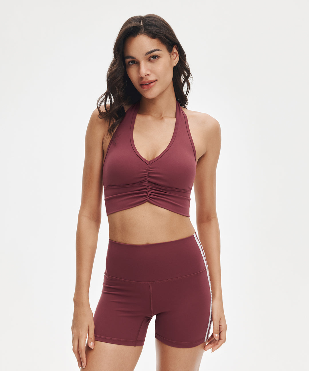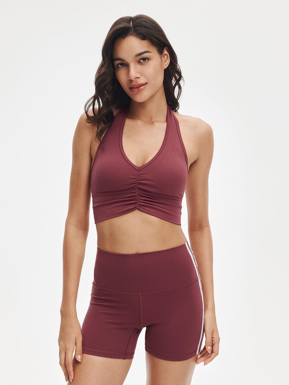 Impossible to ignore. Sweet ruching details and a flattering V-neck elongate the neckline, while the halter design transitions effortlessly from yoga to the street. Style it with relaxed pants or leggings—crafted in ultra-soft LunaAiry™ fabric for all-day comfort.