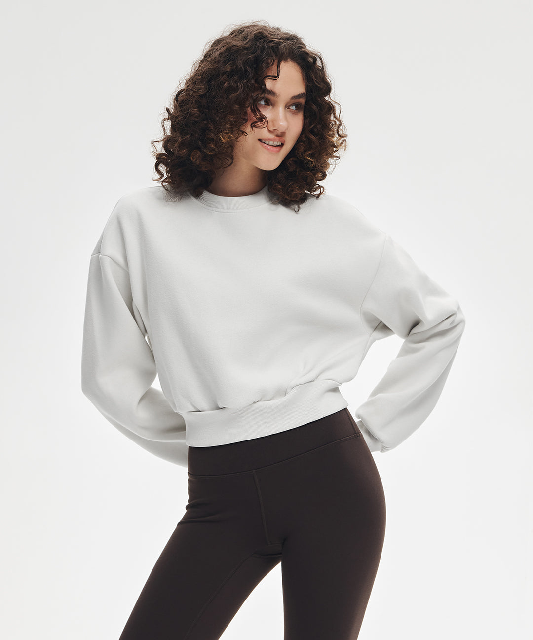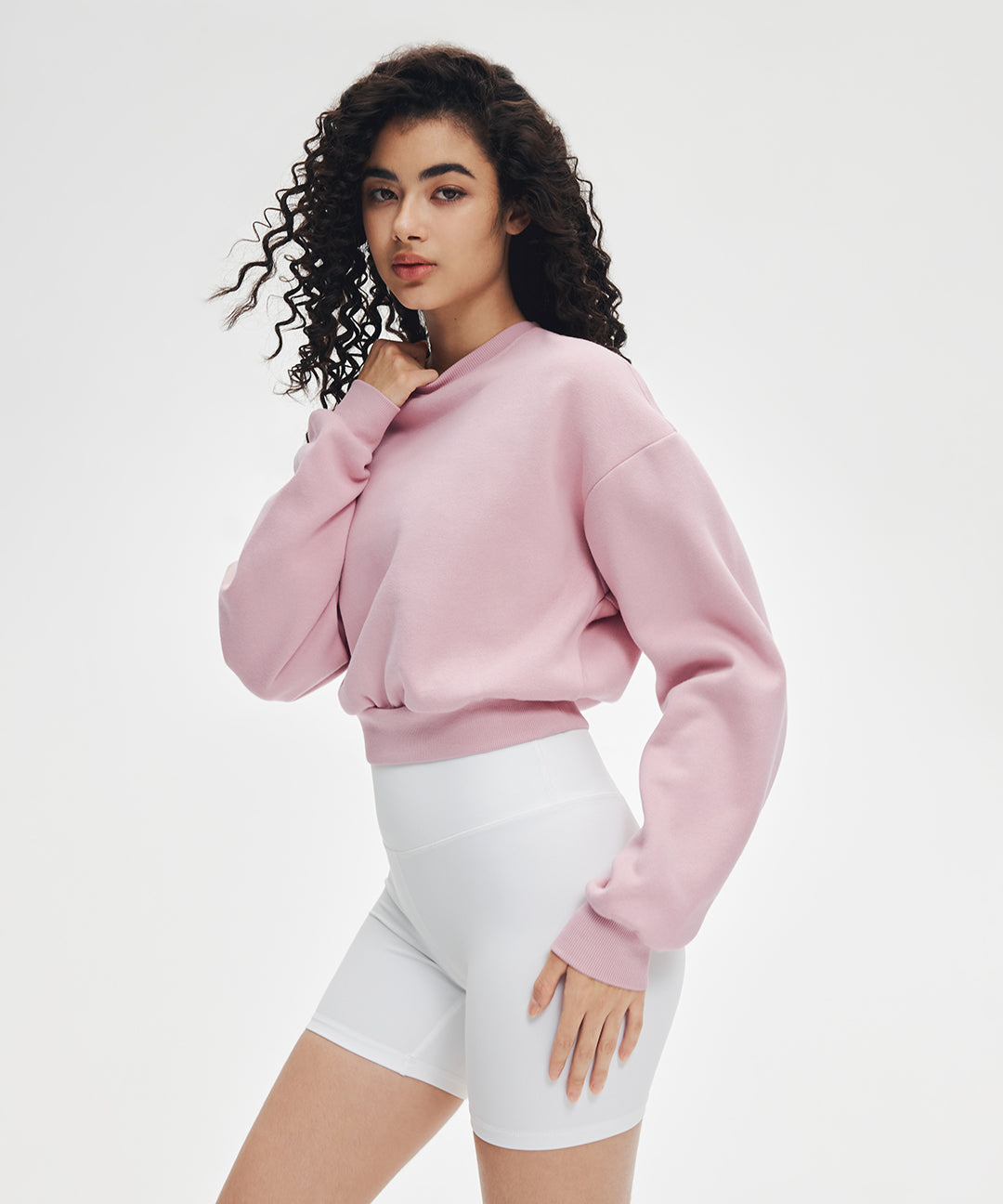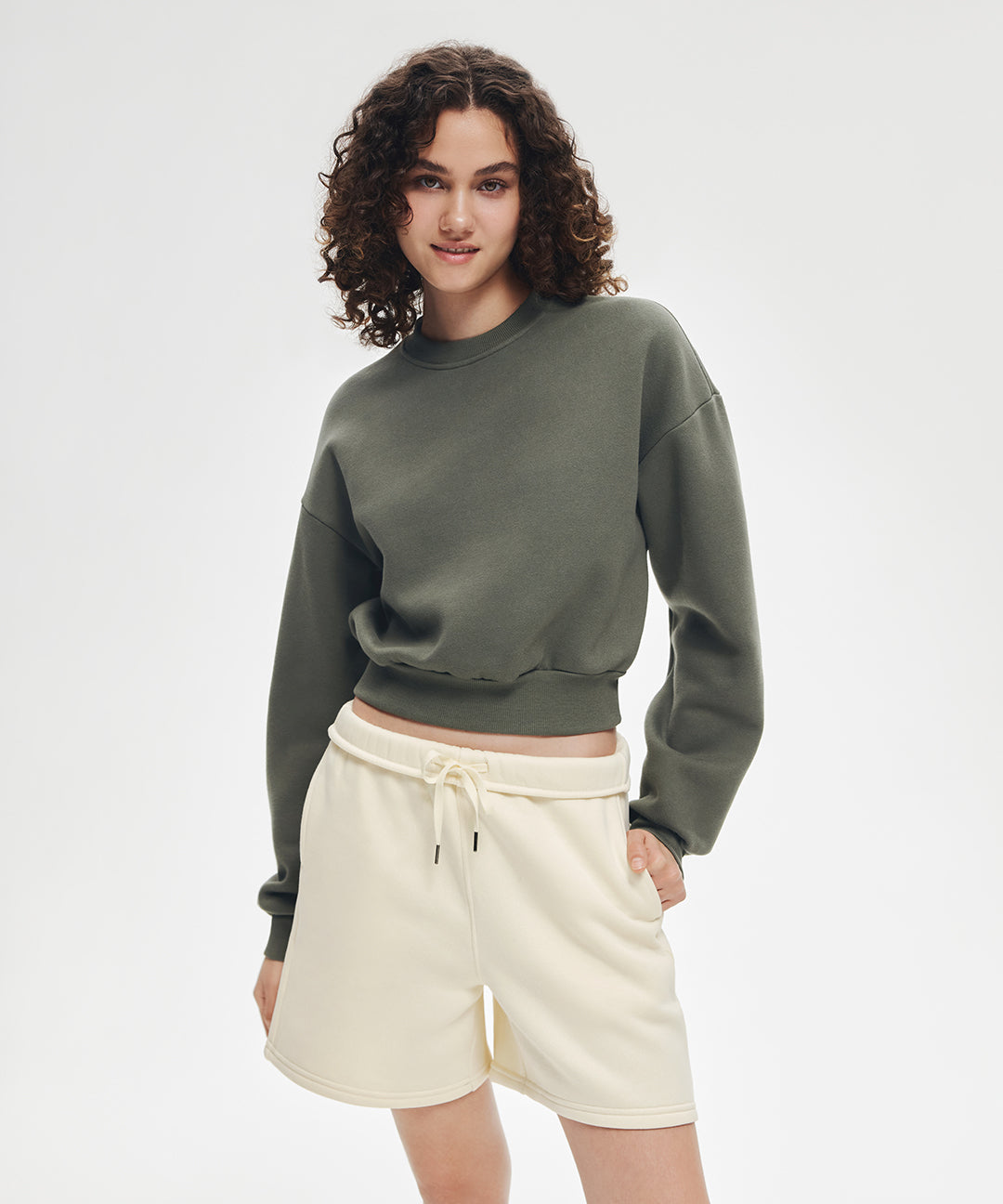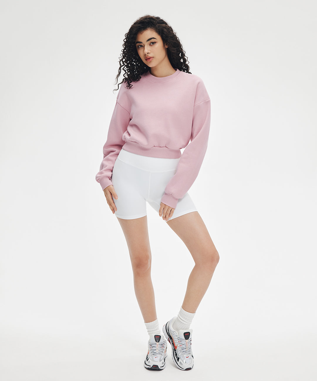 Cropped just right to flatter your proportions! The ribbed hem shapes your silhouette without adding bulk, and it pairs perfectly with leggings, biker shorts, or Cozy Up sweatpants for a comfy-chic look.