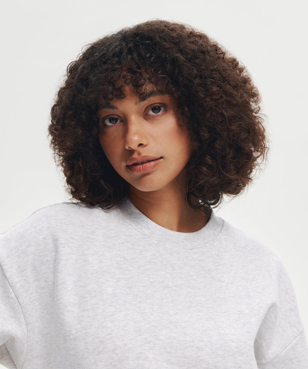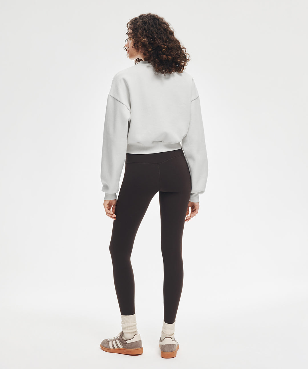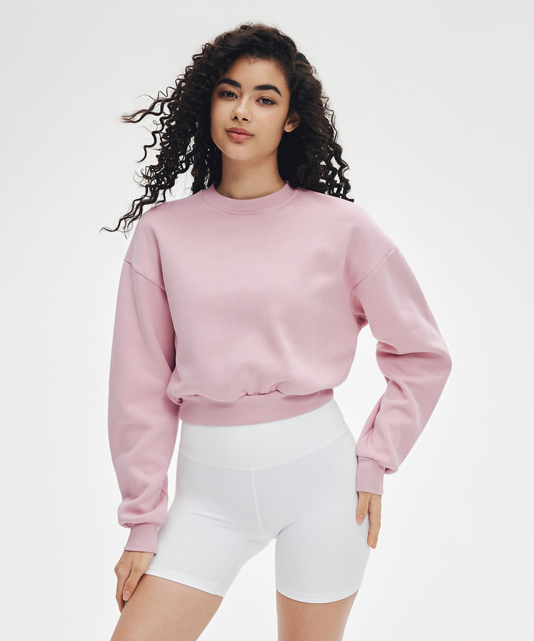 Cropped just right to flatter your proportions! The ribbed hem shapes your silhouette without adding bulk, and it pairs perfectly with leggings, biker shorts, or Cozy Up sweatpants for a comfy-chic look.
