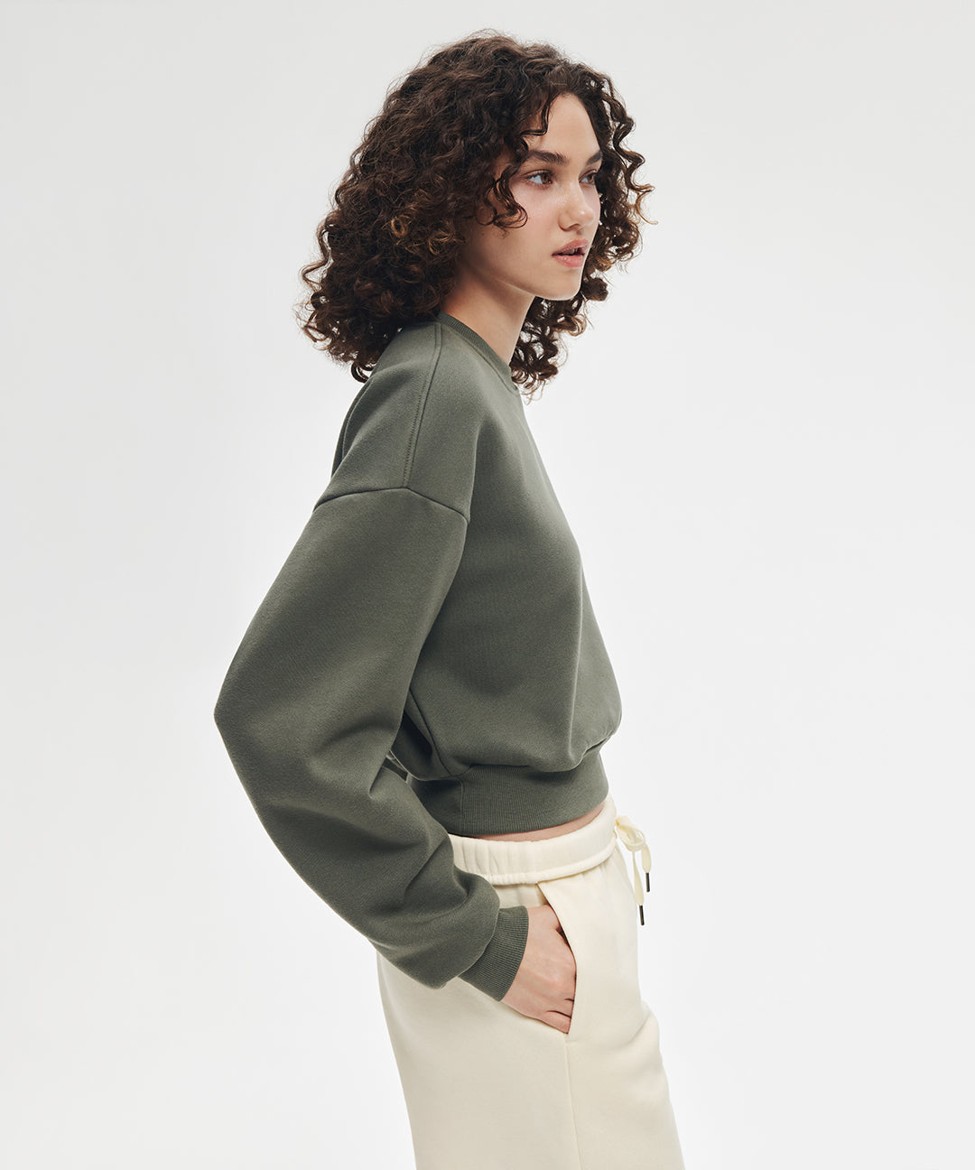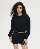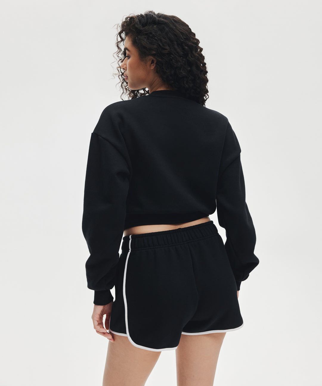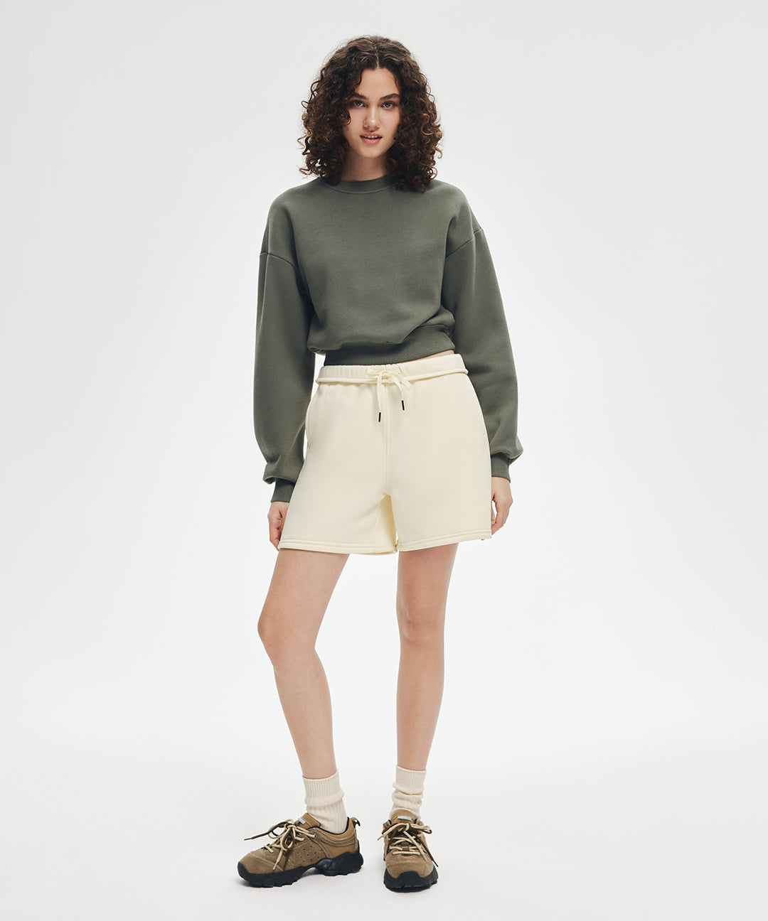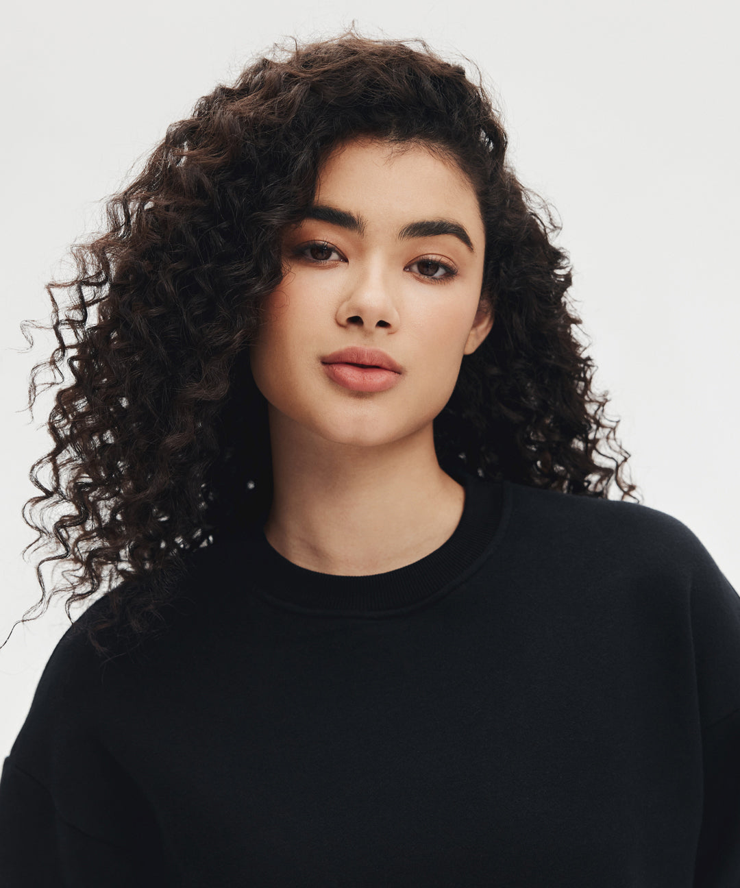 Cropped just right to flatter your proportions! The ribbed hem shapes your silhouette without adding bulk, and it pairs perfectly with leggings, biker shorts, or Cozy Up sweatpants for a comfy-chic look.