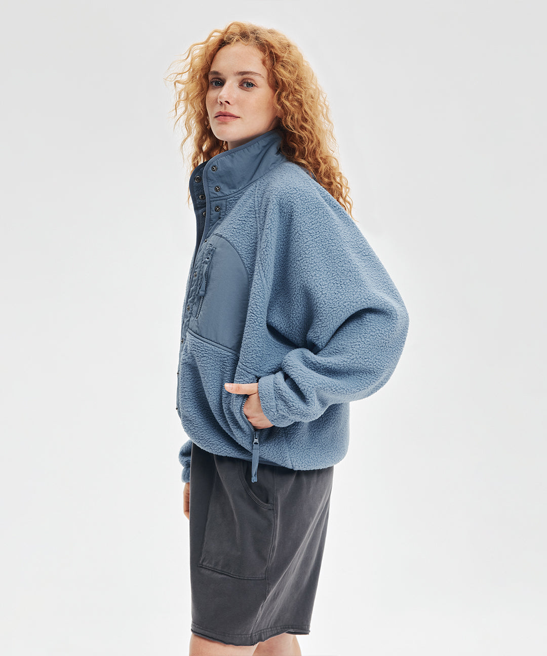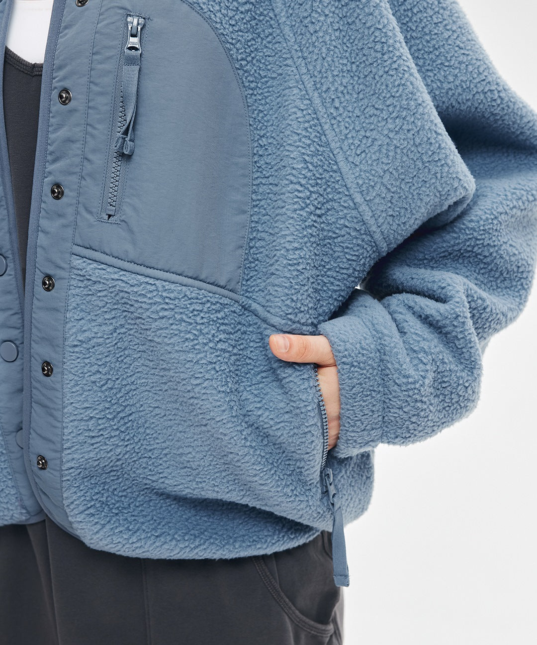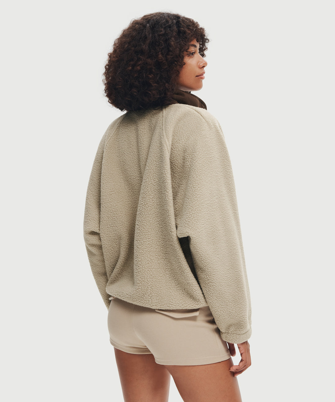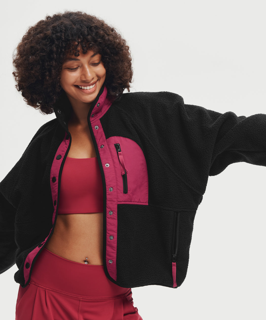 Stay warm, stay wild. This plush fleece brings major cozy energy with a modern edge—relaxed, oversized, and ready for anything. Soft sherpa texture meets sleek nylon detailing for that off-duty-cool vibe you’ll live in all season.