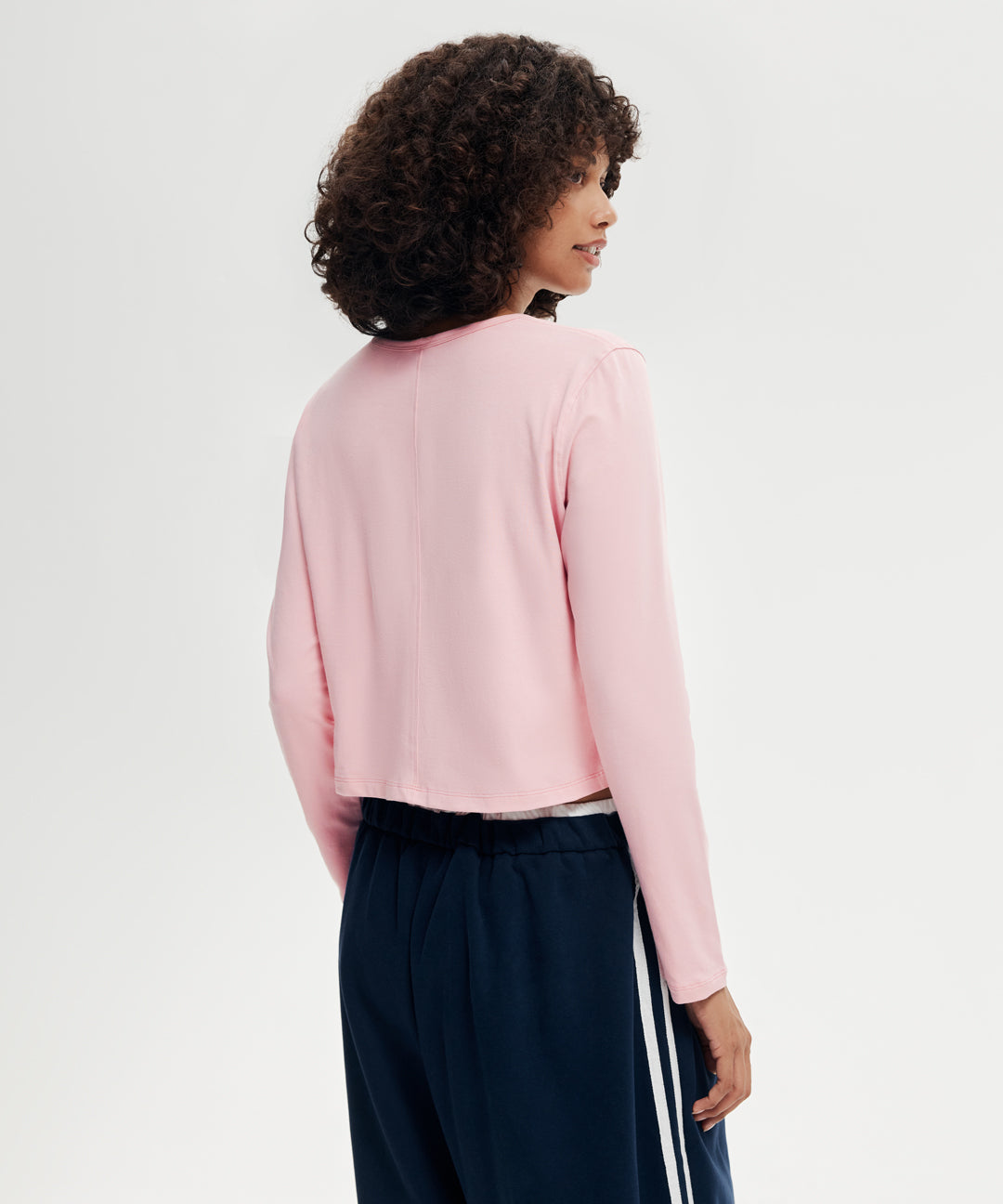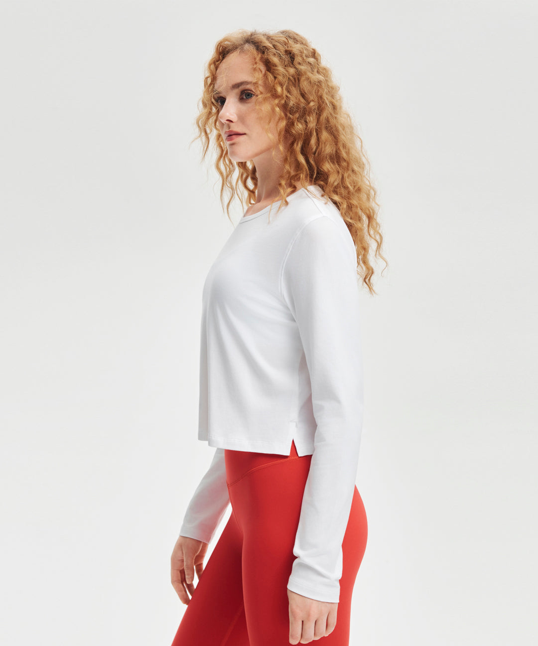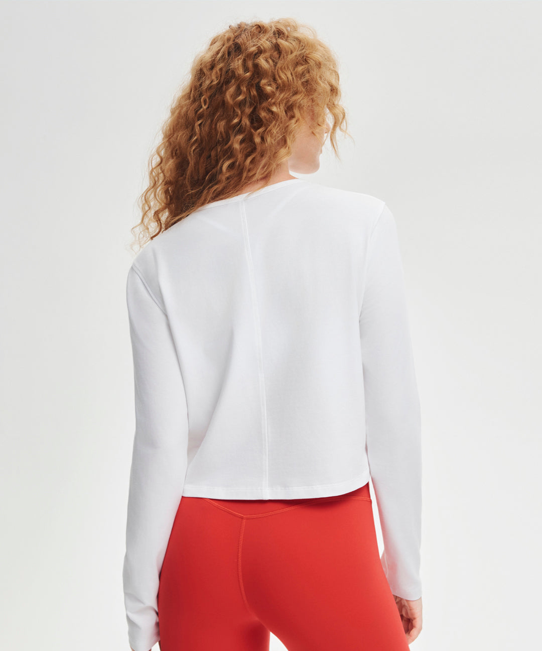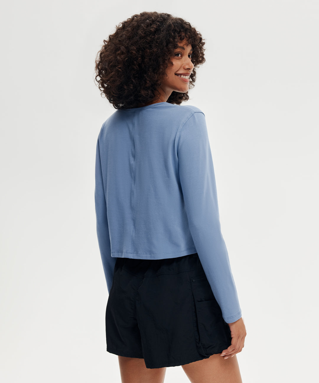 Soft, sleek, and just the right amount of cropped. Crafted from breathable Pima Cotton, it pairs perfectly with high-waist leggings or your favorite sweats. Comfy enough for lounging, cute enough for everywhere else.