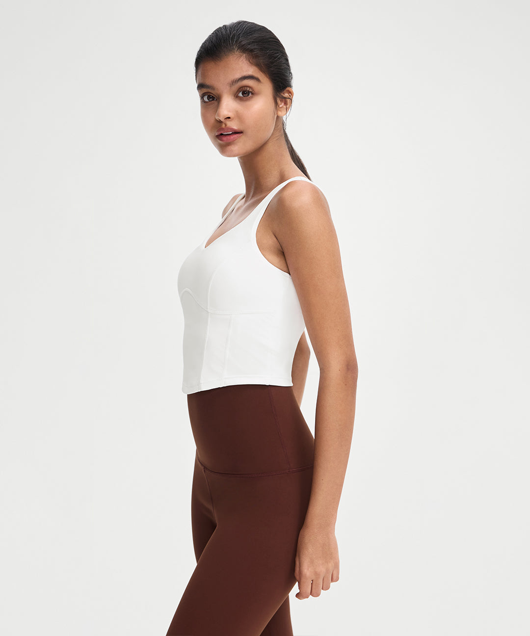 Your new do-it-all tank.Made in our signature buttery-soft fabric, it’s designed with sleek corset-inspired seams and a flattering V-neckline that nails the balance of sporty + chic.Perfect for yoga flows, coffee dates, or anywhere in between.